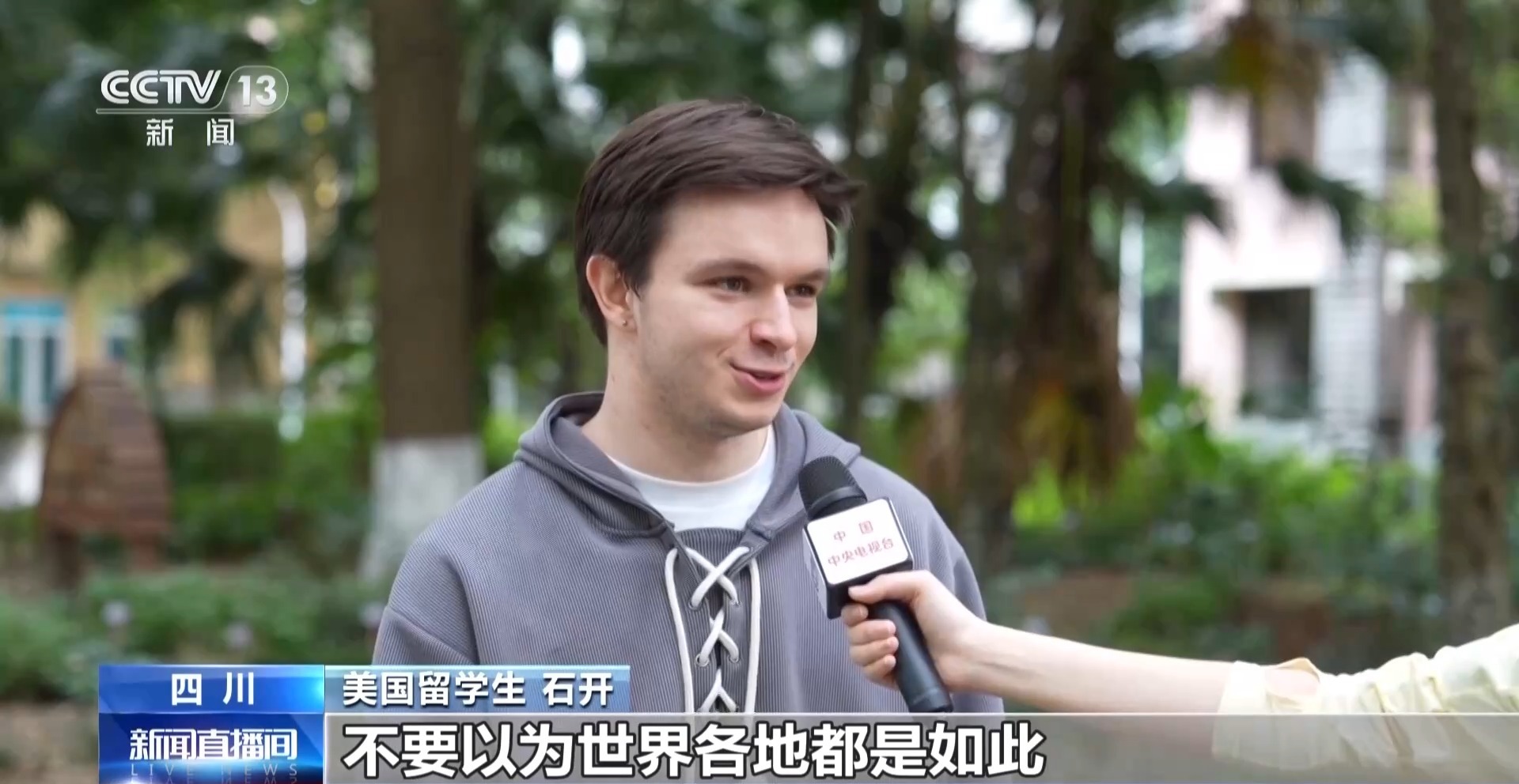 美国留学生 石开:我来中国8个月,无论白天晚上出门,都不用担心自己的安全。不要以为世界各地都是如此。中国是一个很安全、很安逸的地方,让人能充分享受生活。