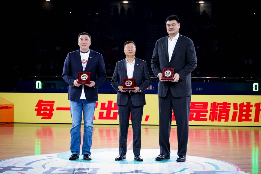 在主题为“以城之名,迎潮而立”的三十周年纪念仪式上,俱乐部为李秋平、姚明、刘炜、章文琪四位上海篮球功勋人物精心准备了功勋纪念章。这枚纪念章,是对那段峥嵘岁月最崇高的致敬。当他们并肩而立,仿佛时光在这一刻交汇,上海篮球的荣耀与传承尽收眼底。
