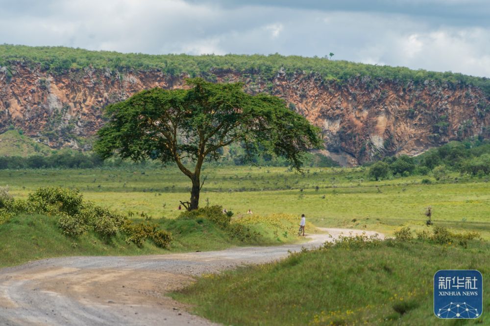 4月21日,游客在肯尼亚“地狱之门”国家公园内骑行、休息。该国家公园位于东非大裂谷内,因怪石嶙峋、沟壑纵横闻名。新华社记者 谢剑飞 摄
