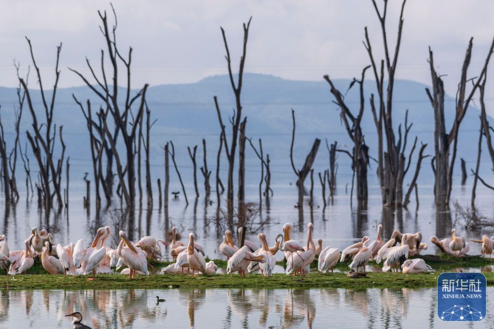 3月2日,群鸟在东非大裂谷内的肯尼亚纳库鲁湖国家公园栖息。纳库鲁湖是肯尼亚东非大裂谷湖泊系统的一部分,该湖泊系统2011年被列入联合国教科文组织《世界遗产名录》。新华社记者 谢剑飞 摄