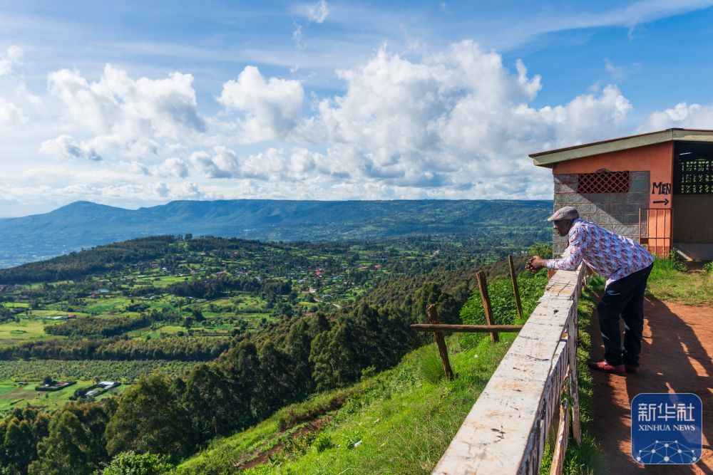4月21日,在肯尼亚基安布郡,游客在一处观景台观看东非大裂谷景观。新华社记者 谢剑飞 摄
