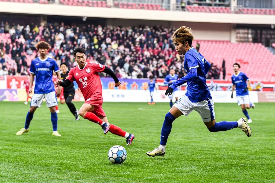 随后进行的沪盐友谊赛则高潮迭起、扣人心弦。盐城市体育局党委书记、局长徐丹为比赛开球,此次来沪的江苏盐城队,是盐城为2026年“苏超”联赛选出的青春力量。据悉,为备战明年的“苏超”,盐城队的组建工作已经启动,200余名球员接受水庆霞指导为首的专家组现场考核,此次选拔的20名球员赴虹口足球场“打擂台”,正是备战来年“苏超”的一次拉练。